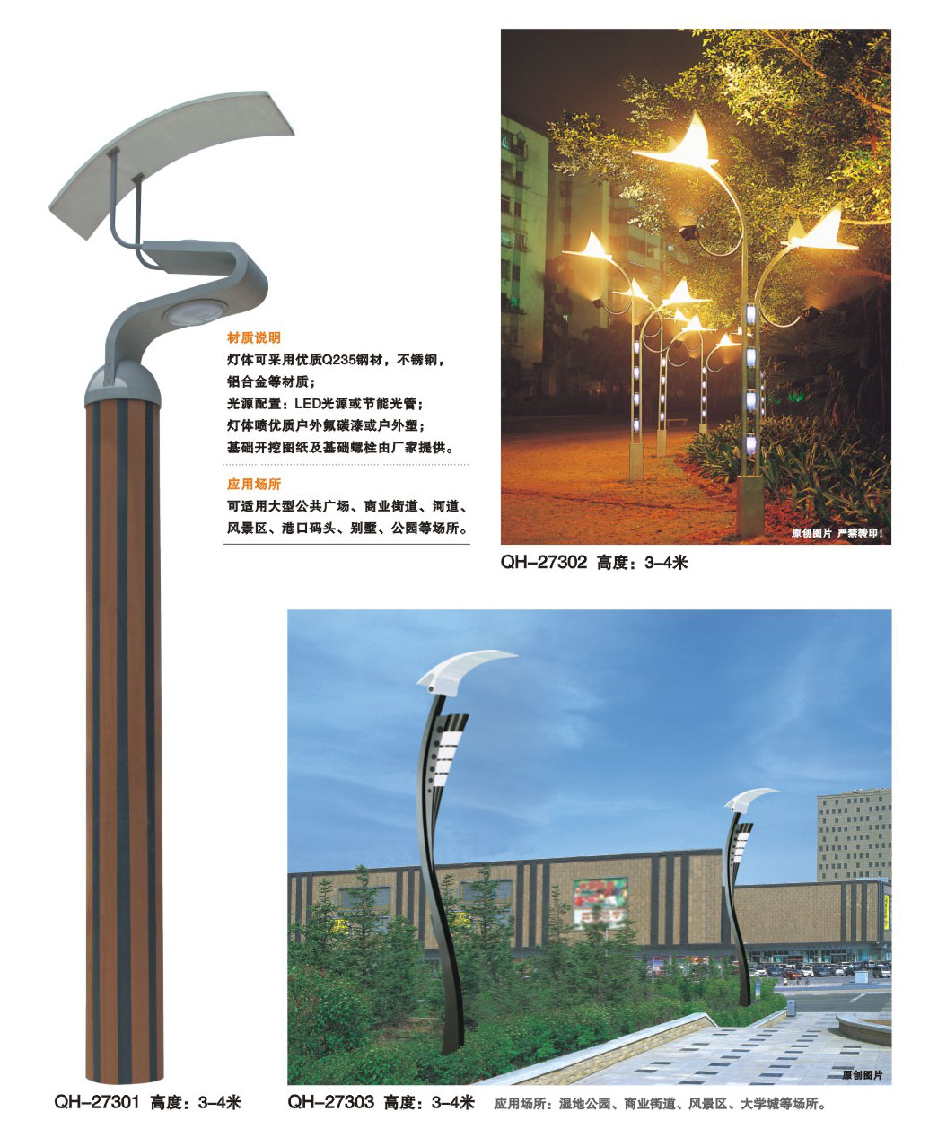 用途:景觀燈適用市政工程、園林亮化工程和公園、開發(fā)區(qū)、別墅區(qū)、廣場(chǎng)等戶外路燈照明工程