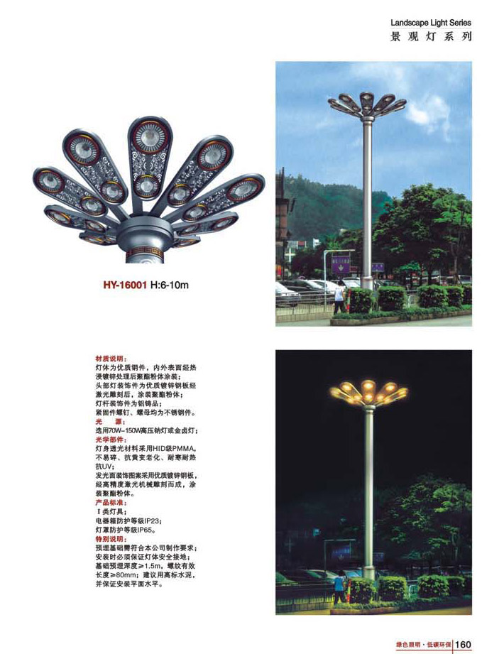 用途:景觀燈適用市政工程、園林亮化工程和公園、開發(fā)區(qū)、別墅區(qū)、廣場等戶外路燈照明工程