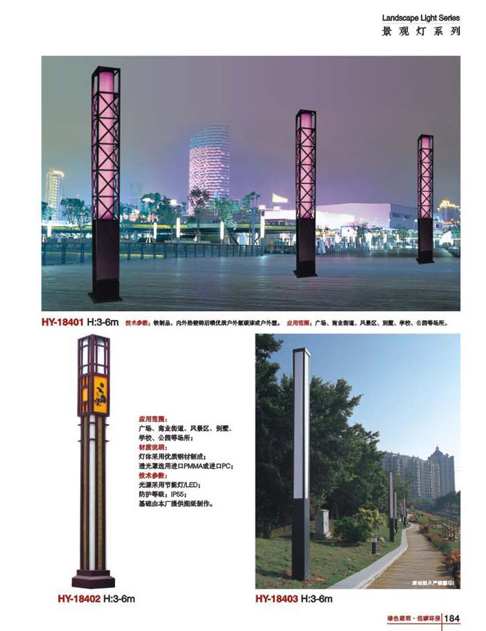 用途:景觀燈適用市政工程、園林亮化工程和公園、開發(fā)區(qū)、別墅區(qū)、廣場等戶外路燈照明工程