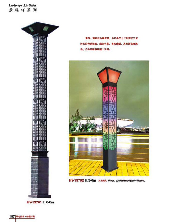 用途:景觀燈適用市政工程、園林亮化工程和公園、開(kāi)發(fā)區(qū)、別墅區(qū)、廣場(chǎng)等戶外路燈照明工程