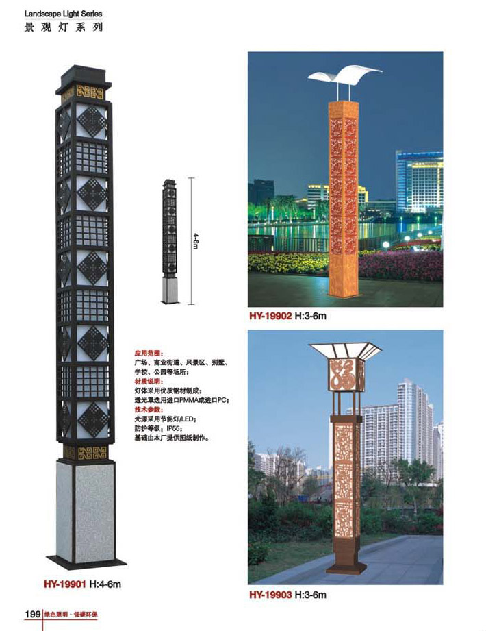 用途:景觀燈適用市政工程、園林亮化工程和公園、開發(fā)區(qū)、別墅區(qū)、廣場等戶外路燈照明工程