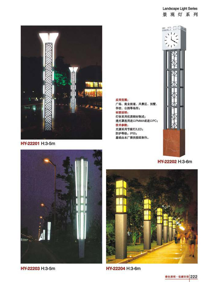 用途:景觀燈適用市政工程、園林亮化工程和公園、開發(fā)區(qū)、別墅區(qū)、廣場等戶外路燈照明工程