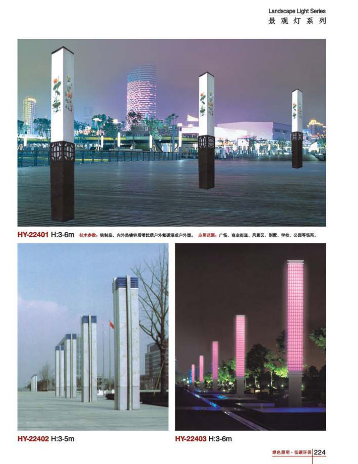 用途:景觀燈適用市政工程、園林亮化工程和公園、開發(fā)區(qū)、別墅區(qū)、廣場等戶外路燈照明工程