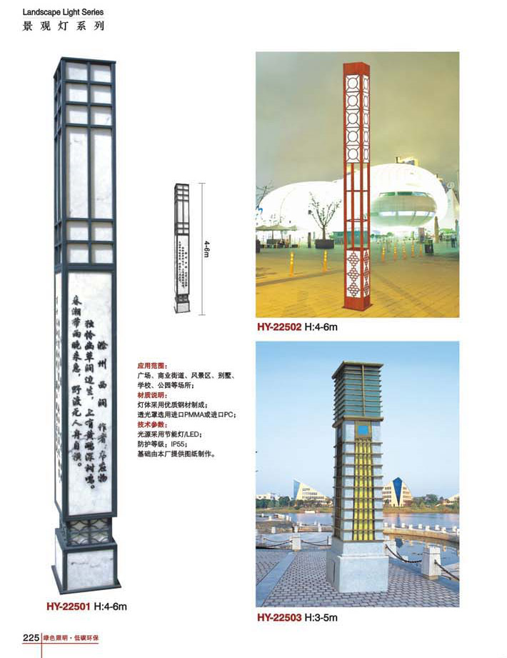 用途:景觀燈適用市政工程、園林亮化工程和公園、開發(fā)區(qū)、別墅區(qū)、廣場等戶外路燈照明工程