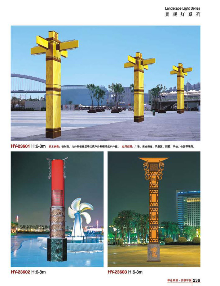 用途:景觀燈適用市政工程、園林亮化工程和公園、開發(fā)區(qū)、別墅區(qū)、廣場等戶外路燈照明工程