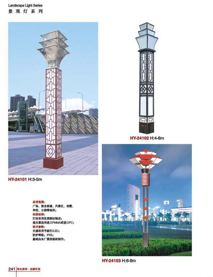 用途:景觀燈適用市政工程、園林亮化工程和公園、開發(fā)區(qū)、別墅區(qū)、廣場(chǎng)等戶外路燈照明工程