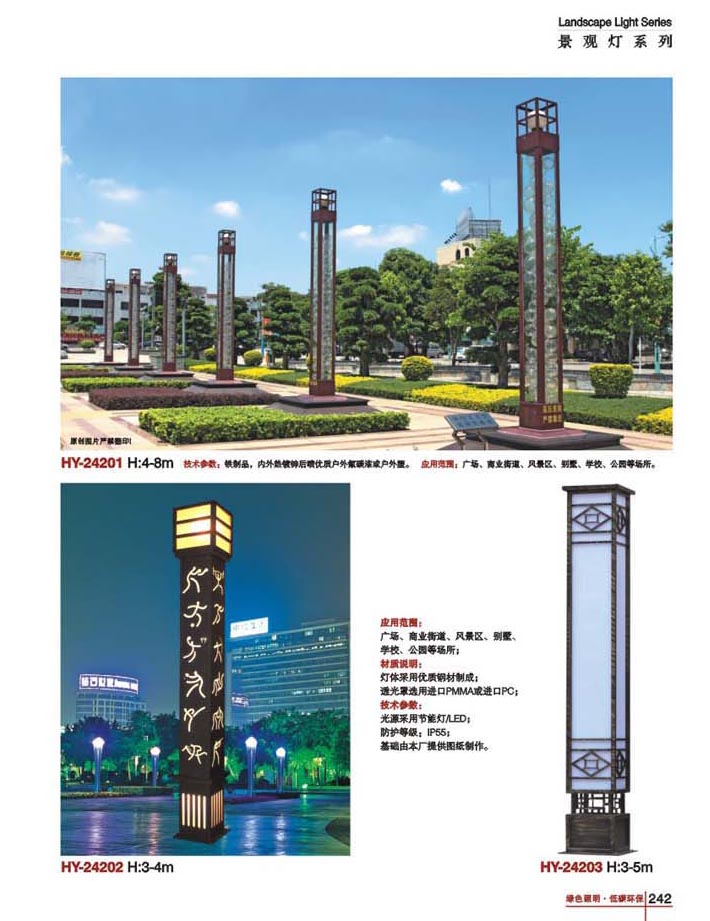 用途:景觀燈適用市政工程、園林亮化工程和公園、開發(fā)區(qū)、別墅區(qū)、廣場(chǎng)等戶外路燈照明工程