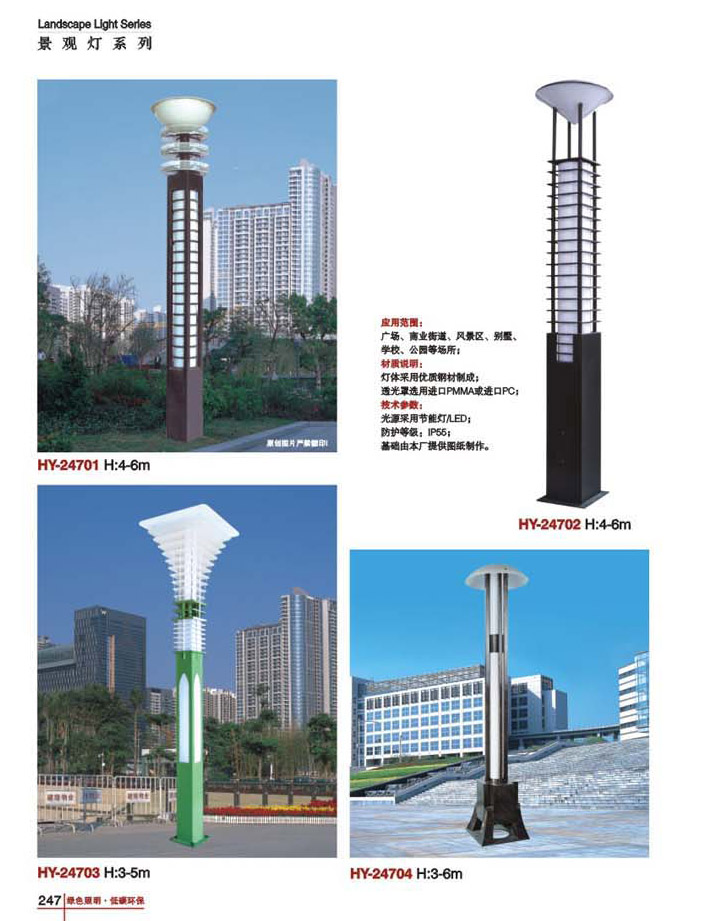 用途:景觀燈適用市政工程、園林亮化工程和公園、開發(fā)區(qū)、別墅區(qū)、廣場等戶外路燈照明工程