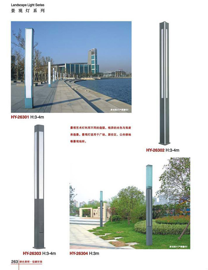 用途:景觀燈適用市政工程、園林亮化工程和公園、開(kāi)發(fā)區(qū)、別墅區(qū)、廣場(chǎng)等戶外路燈照明工程