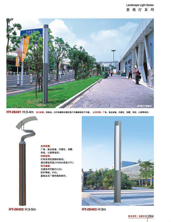 用途:景觀燈適用市政工程、園林亮化工程和公園、開發(fā)區(qū)、別墅區(qū)、廣場等戶外路燈照明工程
