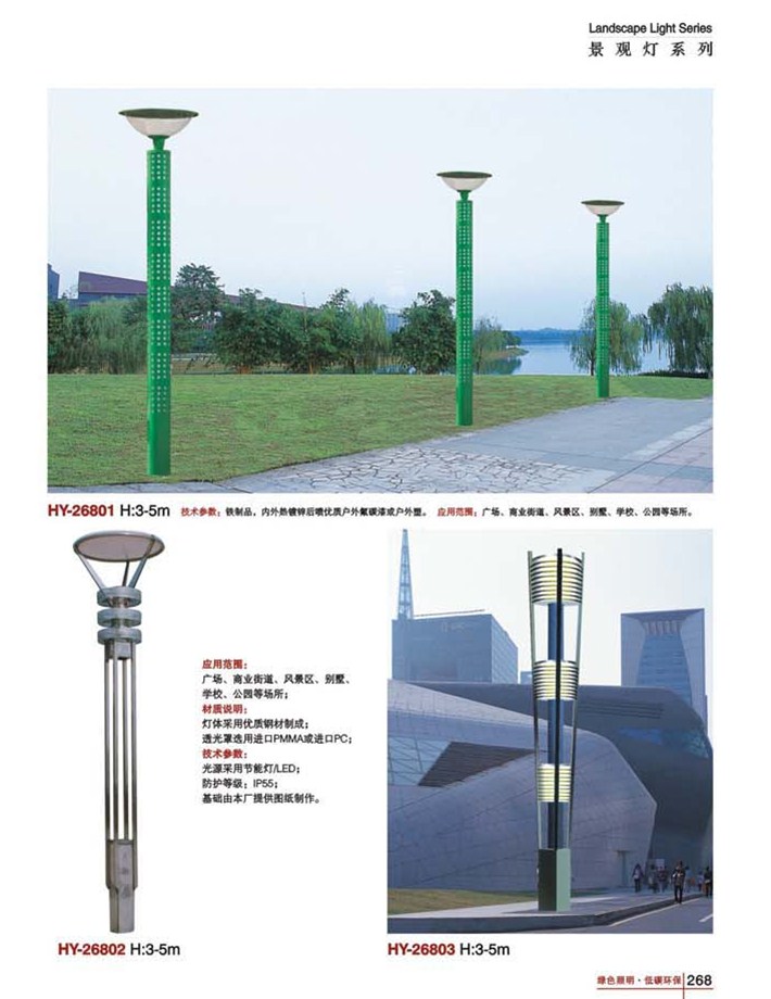 用途:景觀燈適用市政工程、園林亮化工程和公園、開(kāi)發(fā)區(qū)、別墅區(qū)、廣場(chǎng)等戶外路燈照明工程