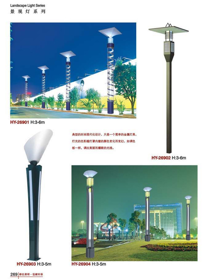 用途:景觀燈適用市政工程、園林亮化工程和公園、開發(fā)區(qū)、別墅區(qū)、廣場等戶外路燈照明工程