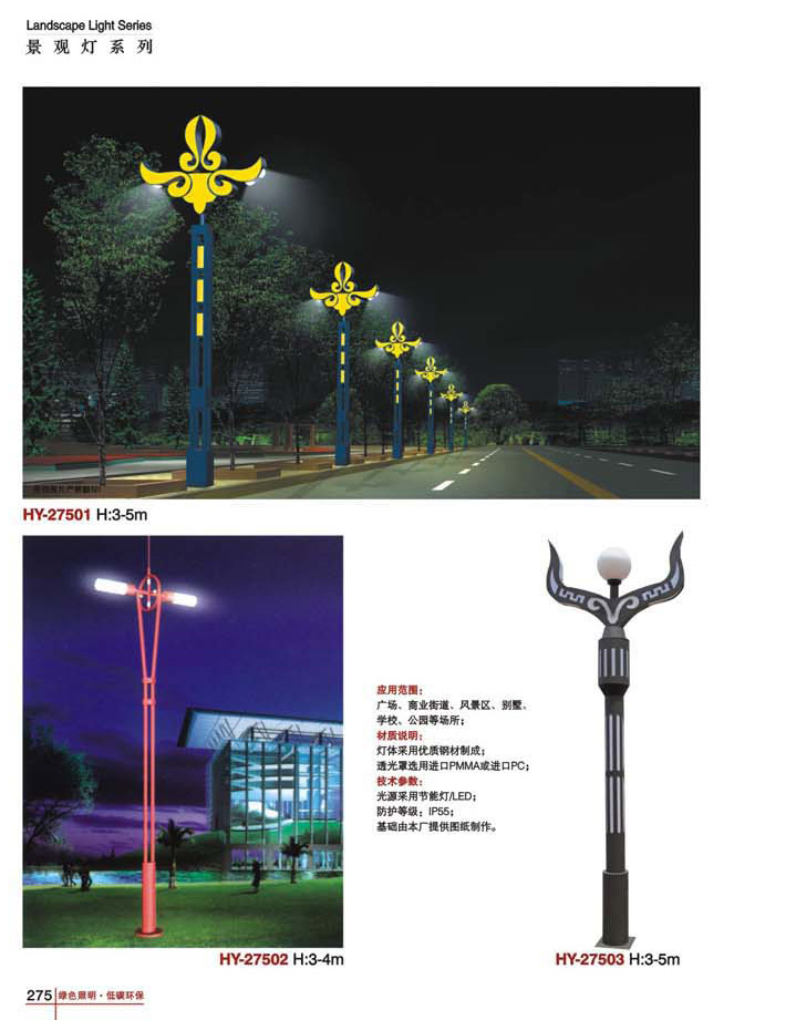 用途:景觀燈適用市政工程、園林亮化工程和公園、開發(fā)區(qū)、別墅區(qū)、廣場等戶外路燈照明工程