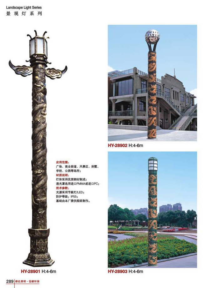 用途:景觀燈適用市政工程、園林亮化工程和公園、開發(fā)區(qū)、別墅區(qū)、廣場(chǎng)等戶外路燈照明工程