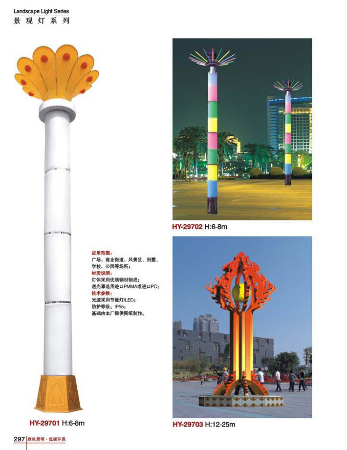 用途:景觀燈適用市政工程、園林亮化工程和公園、開發(fā)區(qū)、別墅區(qū)、廣場等戶外路燈照明工程