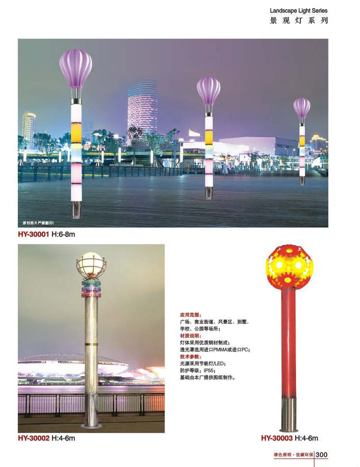 用途:景觀燈適用市政工程、園林亮化工程和公園、開發(fā)區(qū)、別墅區(qū)、廣場等戶外路燈照明工程