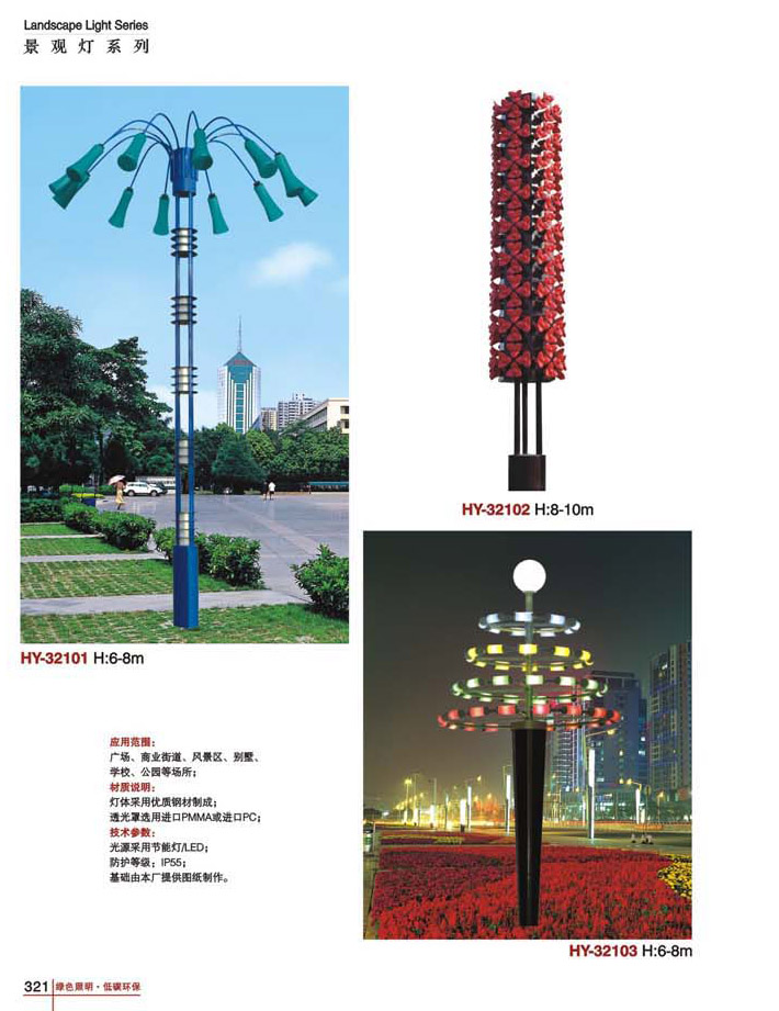 用途:景觀燈適用市政工程、園林亮化工程和公園、開發(fā)區(qū)、別墅區(qū)、廣場等戶外路燈照明工程