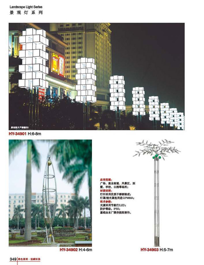 用途:景觀燈適用市政工程、園林亮化工程和公園、開發(fā)區(qū)、別墅區(qū)、廣場(chǎng)等戶外路燈照明工程