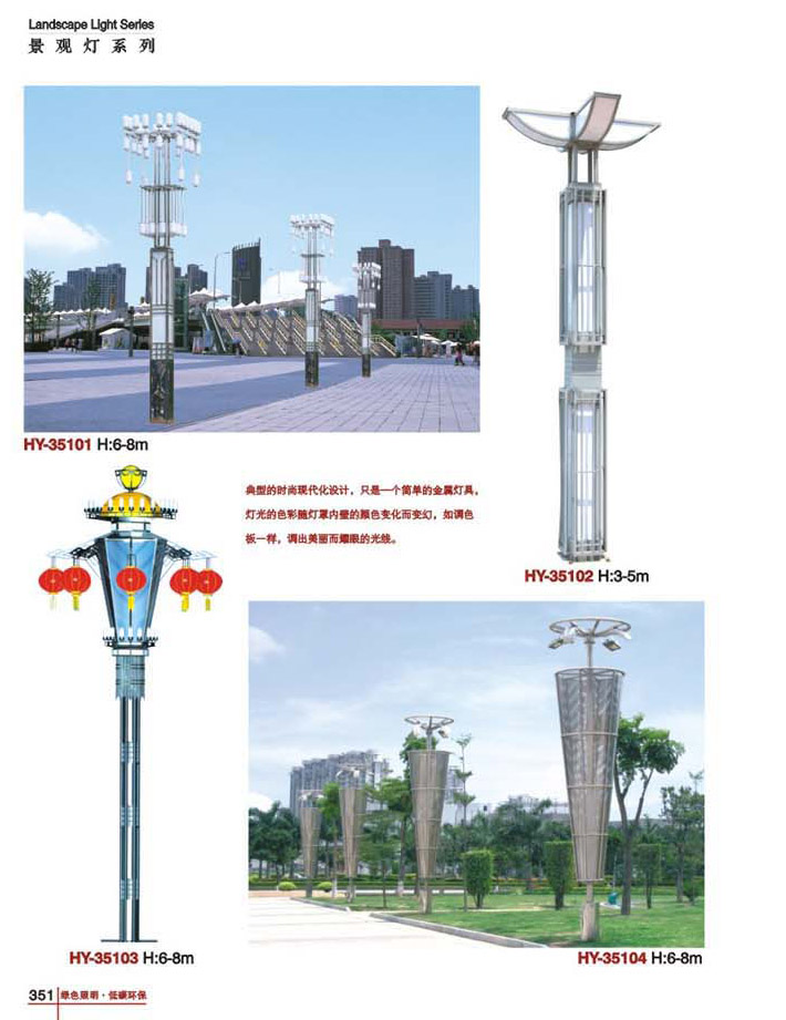 用途:景觀燈適用市政工程、園林亮化工程和公園、開(kāi)發(fā)區(qū)、別墅區(qū)、廣場(chǎng)等戶外路燈照明工程