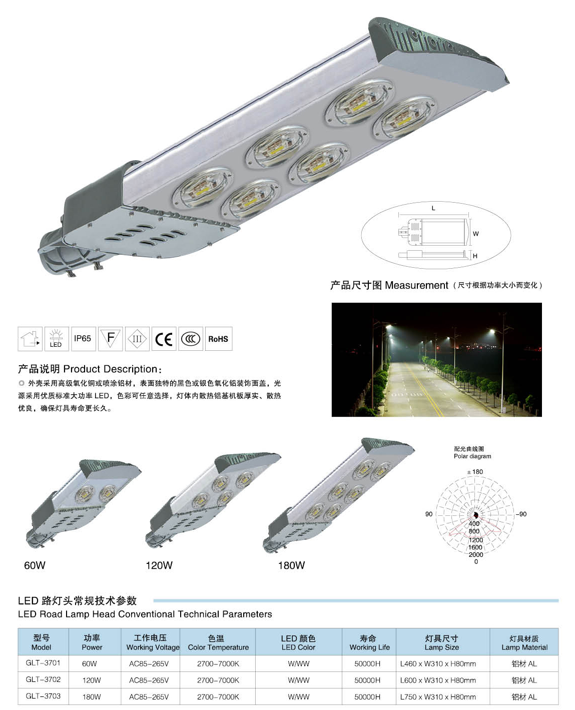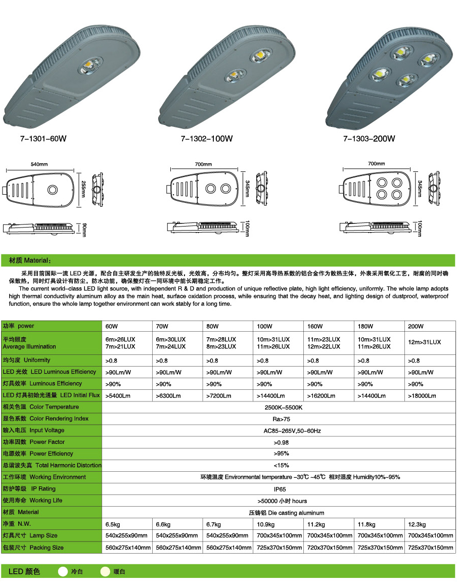 led路燈燈頭技術(shù)參數(shù):