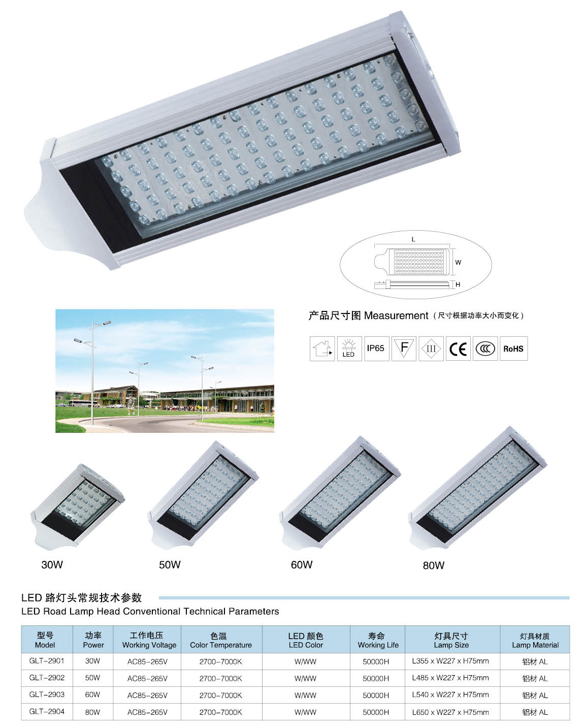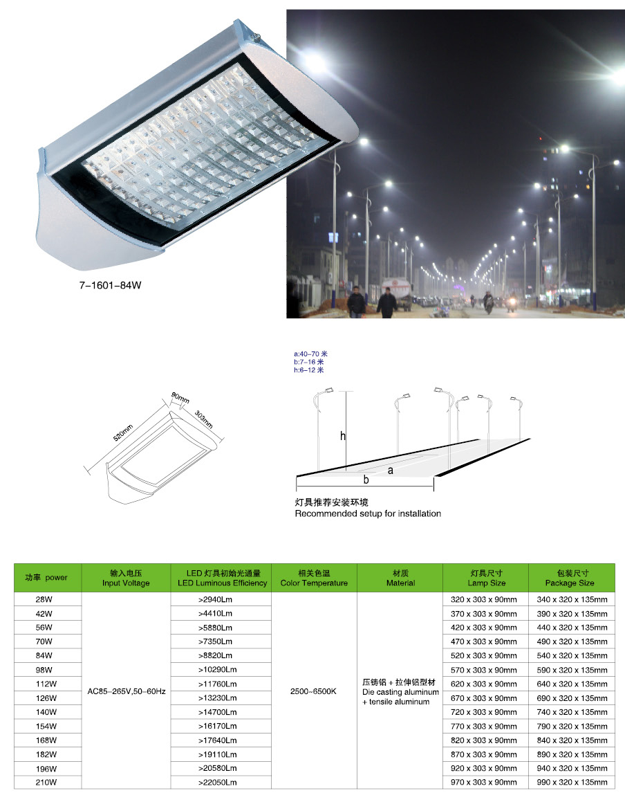 led路燈燈頭技術(shù)參數(shù):