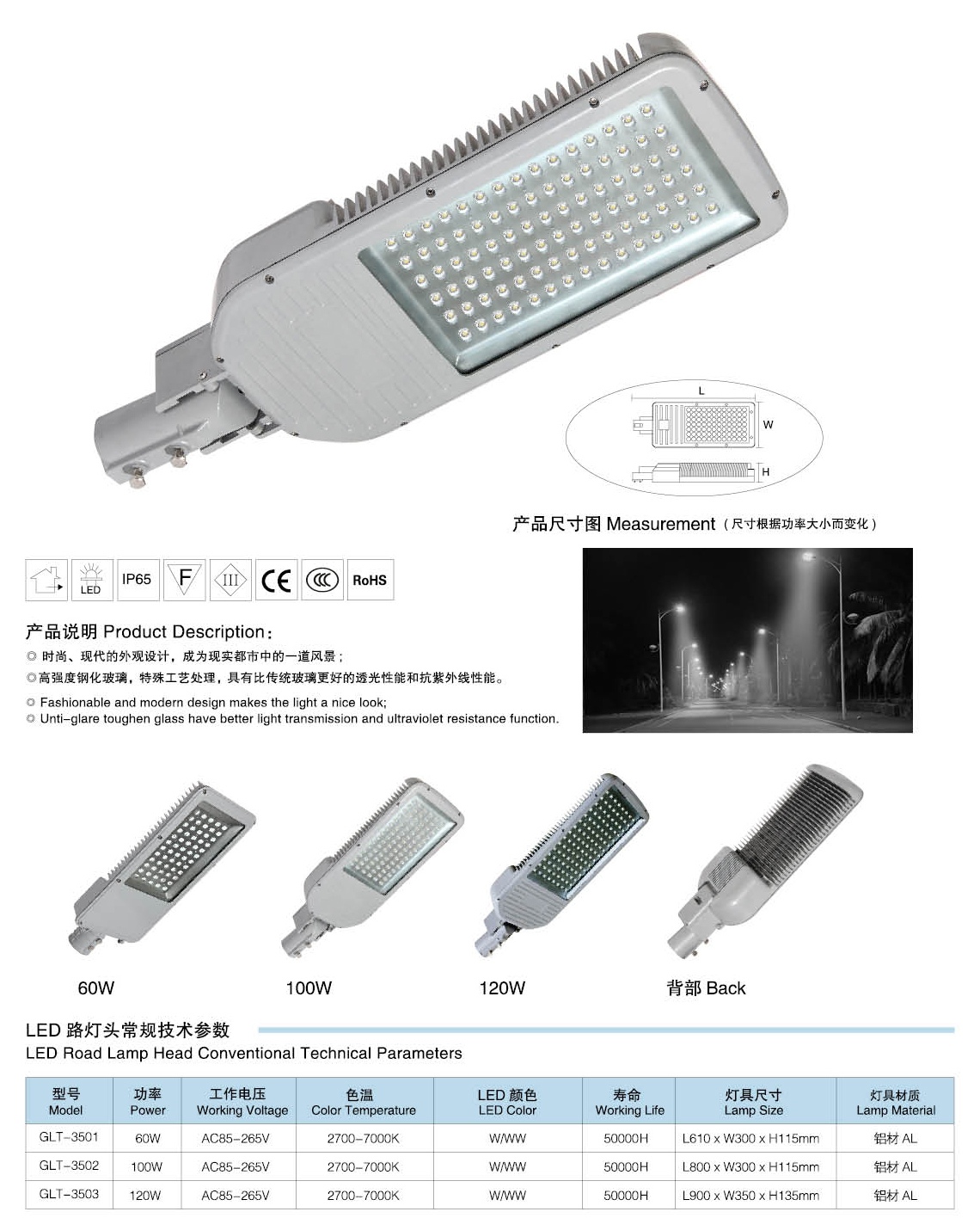 燈具參數(shù):60W、100W、120W